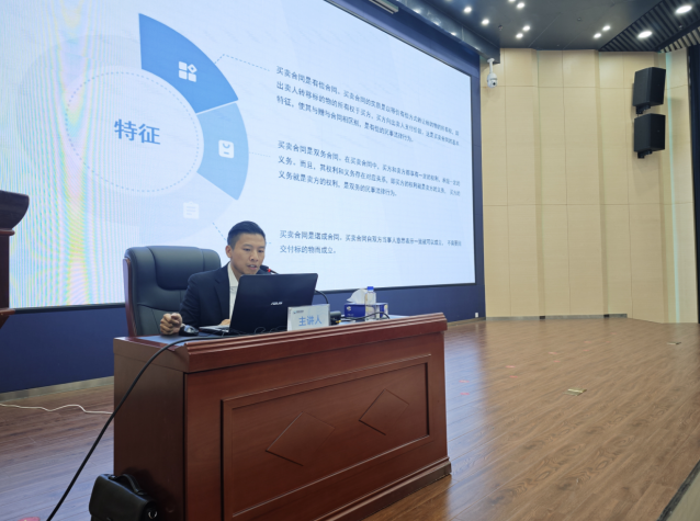 此次法治課邀請(qǐng)了廣東偉倫(廣州)律師事務(wù)所資深律師黃睿主講。黃睿系統(tǒng)闡述了合同的基本概念、特征及種類,深入剖析了買賣合同的框架結(jié)構(gòu),重點(diǎn)講解了核心條款的審查技巧。豐富的實(shí)踐經(jīng)驗(yàn)和典型案例,使這堂法治課通俗易懂。