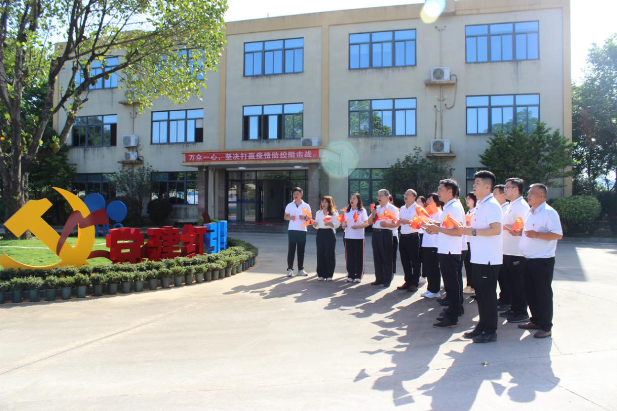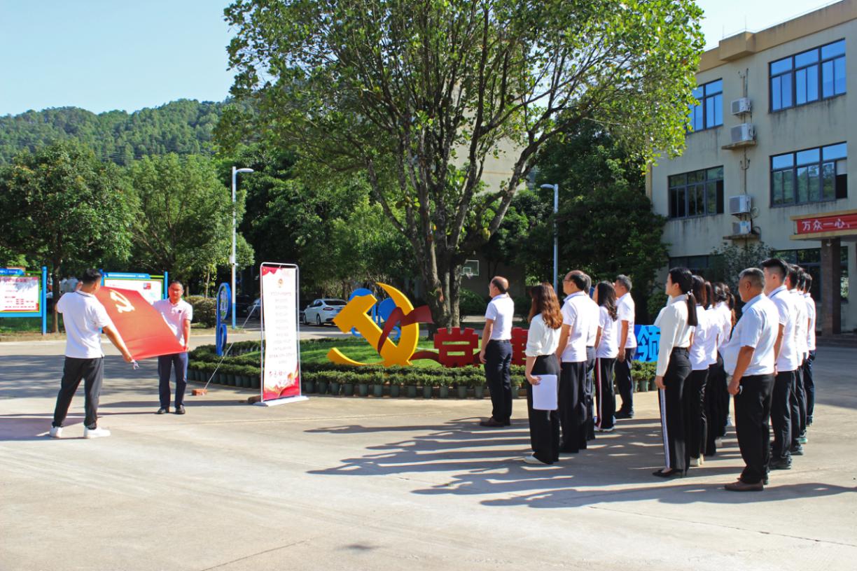 在“黨建紅引領(lǐng)雙碳綠”的花壇雕塑前,面向鮮紅的黨旗,韓雁飛同志帶領(lǐng)全體黨員重溫入黨誓詞、歌唱《沒有共產(chǎn)黨就沒有新中國》。伴隨著一句句鏗鏘有力的誓詞和聲如洪鐘的歌聲,黨員進一步樹牢初心使命,堅定了對黨忠誠、為共產(chǎn)主義奮斗終身的信心和決心。