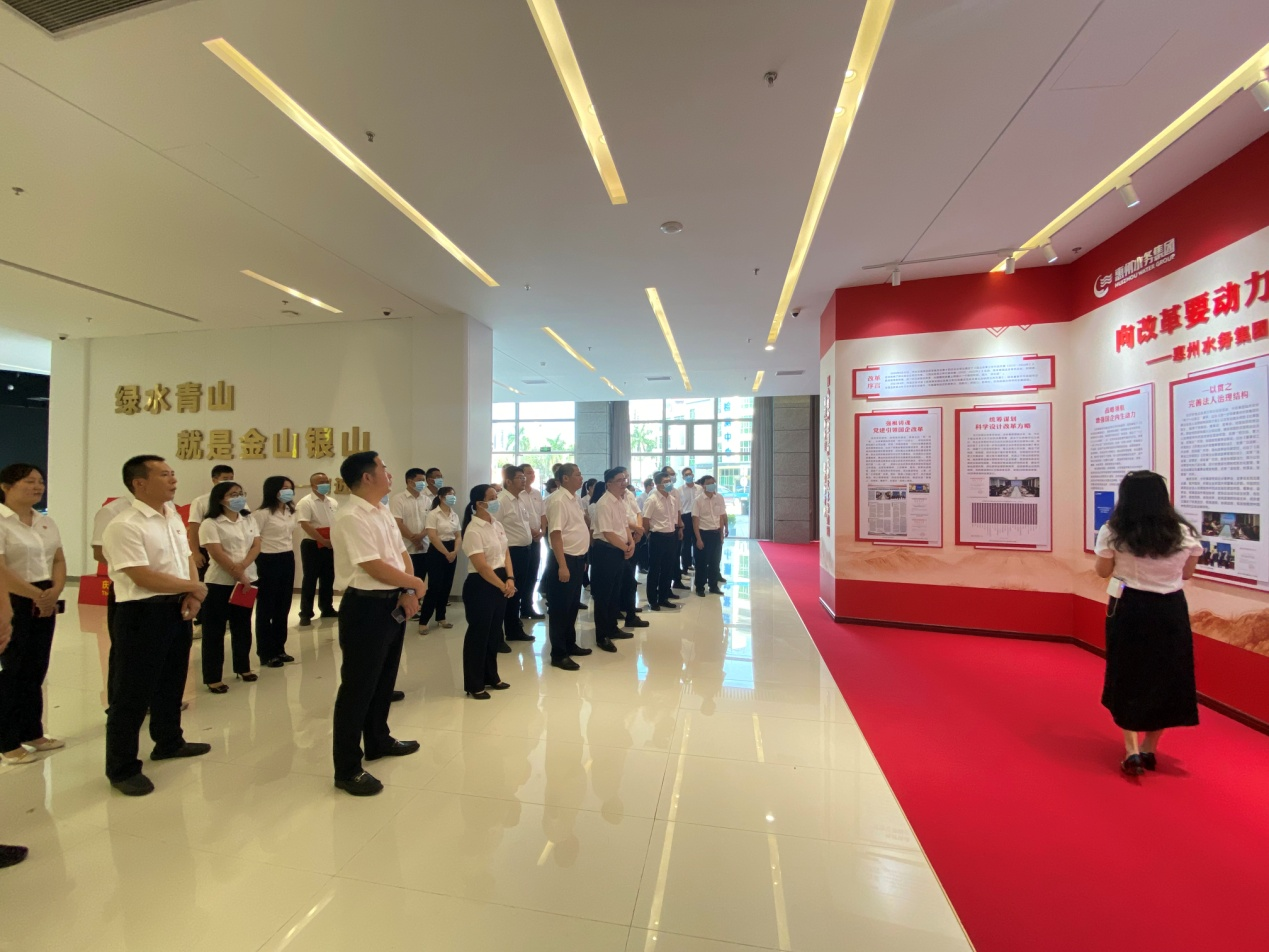 全體黨員首先參觀了集團(tuán)大院的黨建、國企改革宣傳欄及一樓國企改革成果展廳,深入學(xué)習(xí)國有企業(yè)基層黨組織建設(shè)工作和集團(tuán)國企改革工作的核心內(nèi)容,深刻領(lǐng)悟集團(tuán)“創(chuàng)新模式書寫五篇水文章”的重要意義,激發(fā)內(nèi)心干事創(chuàng)業(yè)的斗志和激情。